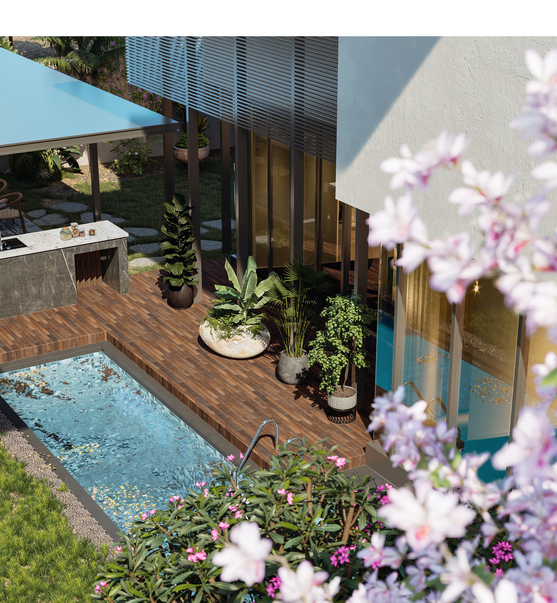 For Nidhi and Tabish, an Indian couple who is living in US for many years, coming home meant more than just crossing borders-it meant creating a place that feels like a getaway, every single day. When they bought their villa at Embassy Boulevard, they dreamed of a backyard that blended elegance with ease. A space to unwind, entertain, and soak in slow moments-just like a holiday, but at home.