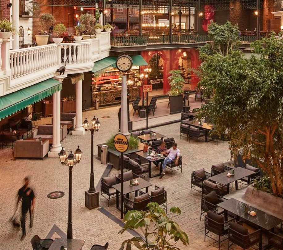 The core concept was to recreate the atmosphere of a quintessential European street. The design features include:
